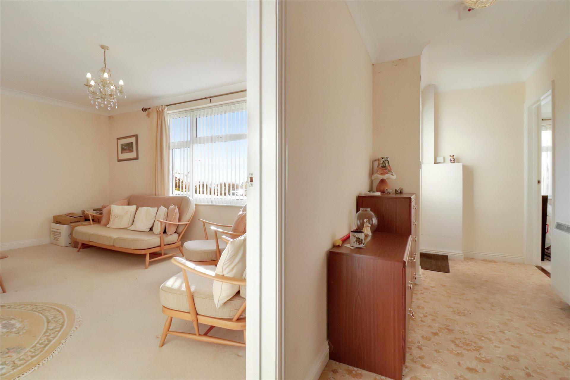A spacious detached bungalow in a quiet Chulmleigh culdesac, offering two double bedrooms, generous living spaces, wrap around gardens and farreaching views towards St Mary Magdalene Church.