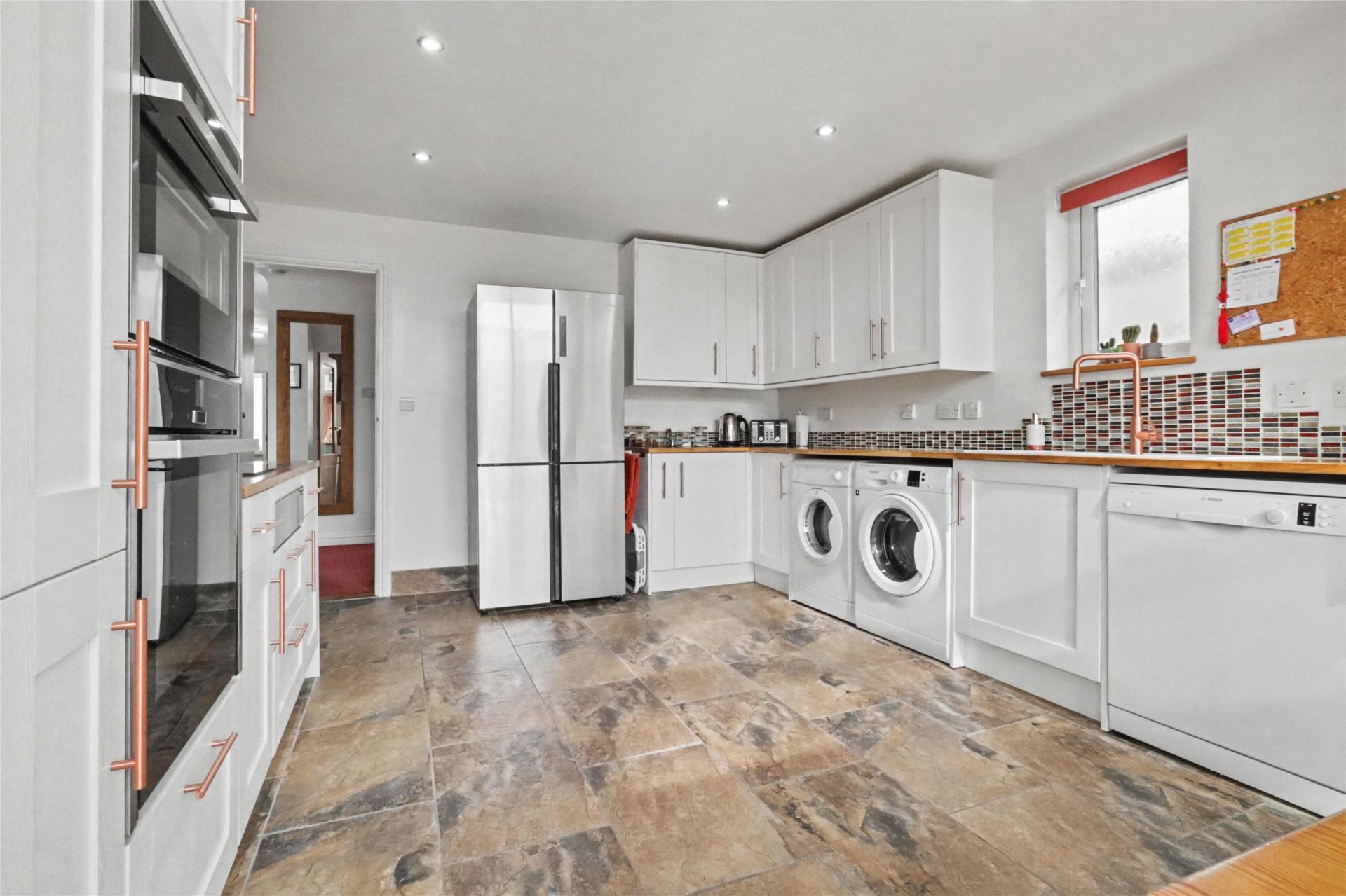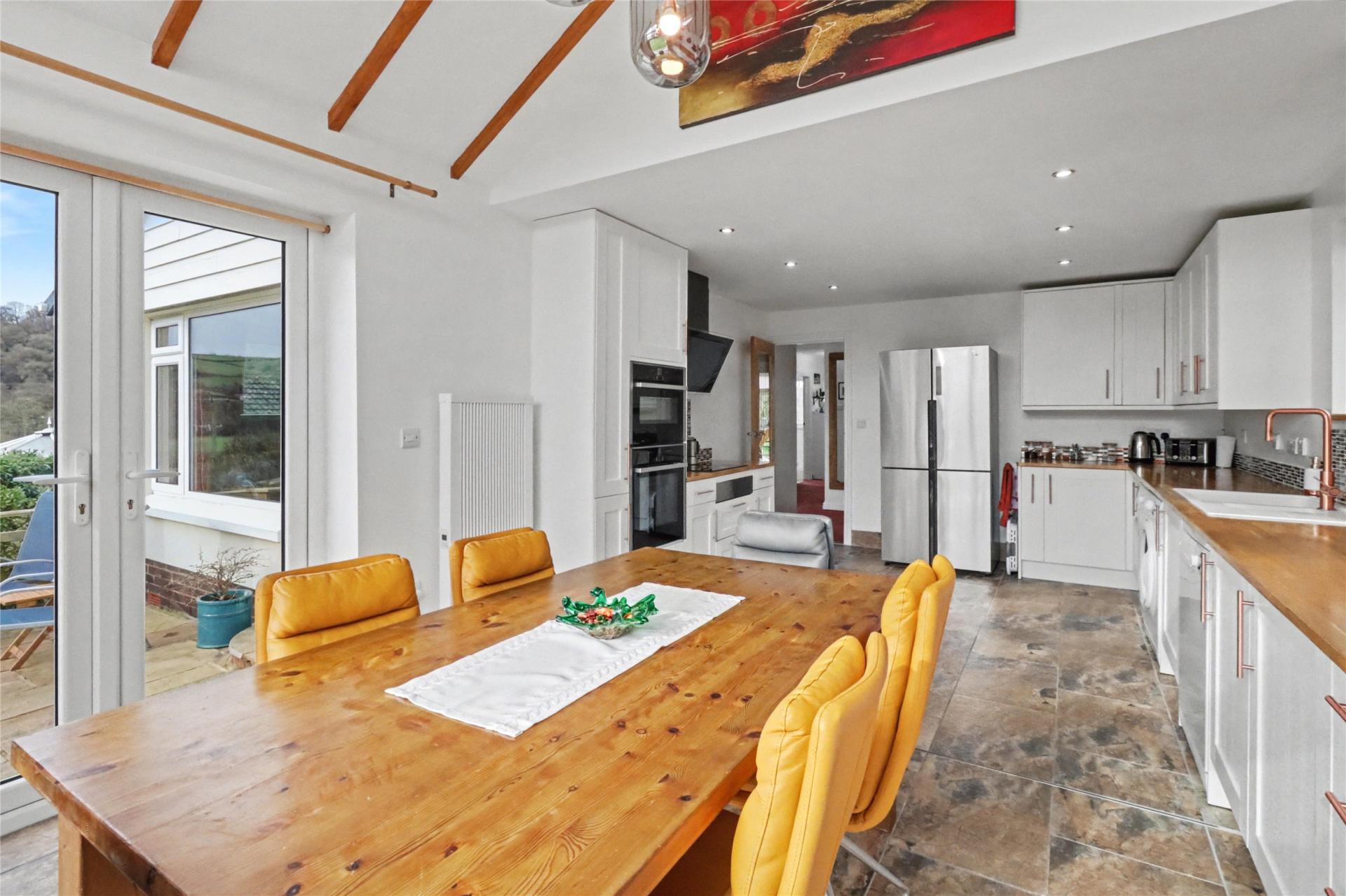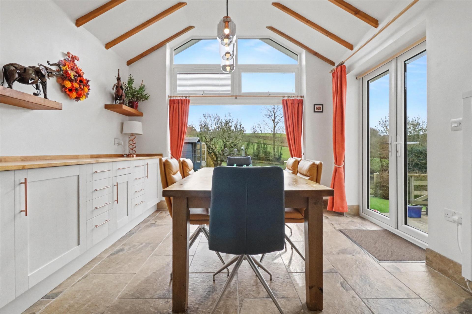To the rear of the property lies the superbly appointed kitchen/dining room, thoughtfully extended by the current owners to create an impressive and light-filled space. Enjoying outstanding countryside views and overlooking the rear garden, this room is perfectly suited to both everyday living and entertaining. The kitchen is comprehensively fitted with matching wall and base units, complemented by an integrated Neff Slide & Hide oven and an additional Neff microwave/grill/oven combination, both featuring self-cleaning functions. An integrated hob with fitted extractor is intelligently linked to activate automatically when in use, the kitchen also benefits from a warming draw, while space and plumbing are provided for further white goods. A door opens directly onto a raised patio area, creating a seamless connection between the interior and the garden beyond.
