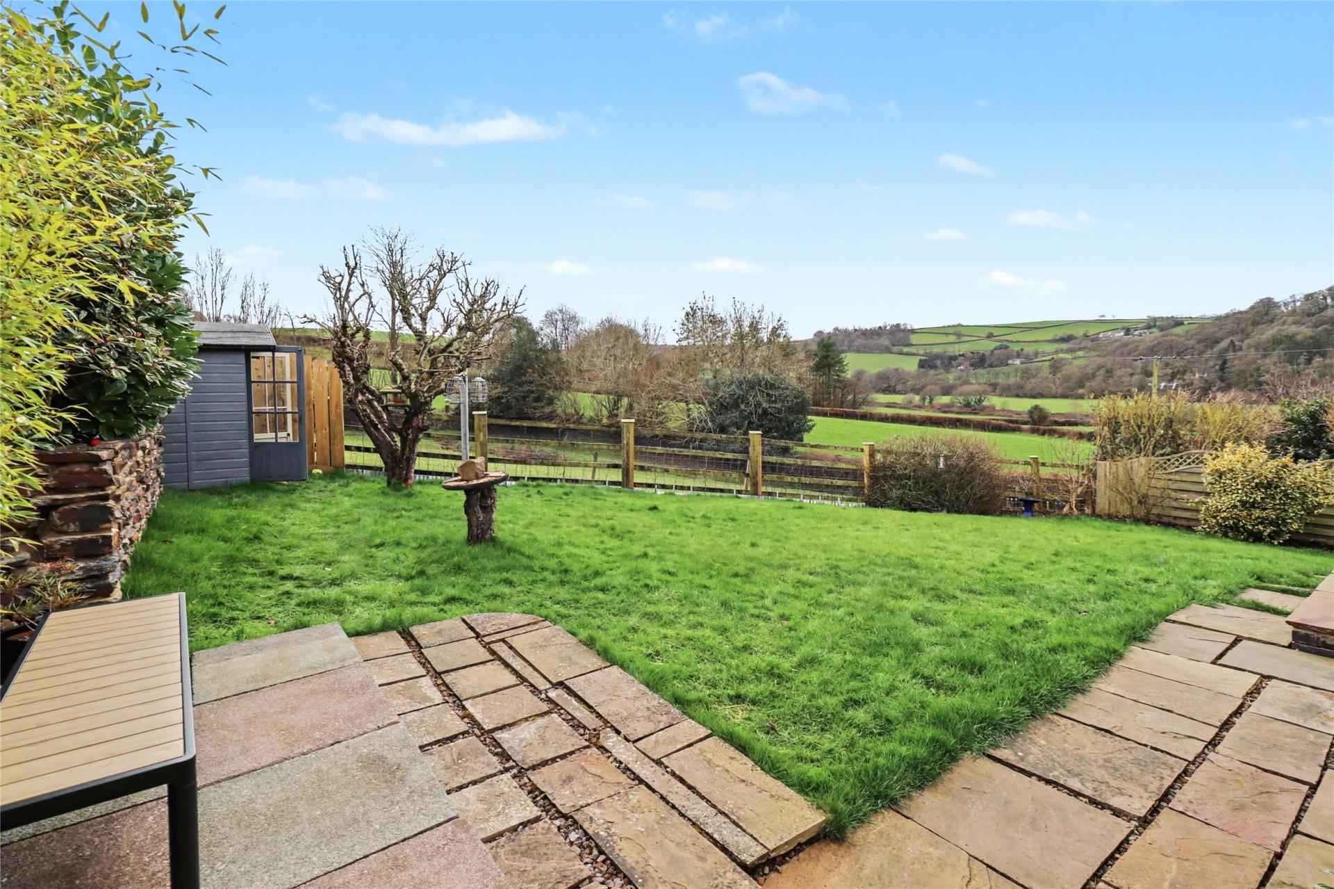 To the rear of the property is a beautifully landscaped garden featuring a sandstone patio area directly outside the rear doors, enclosed by attractive wood and metal balustrading. Beyond this, a large lawned area is bordered by shrubs and complemented by a timber summer house, perfectly positioned to take in the stunning views.