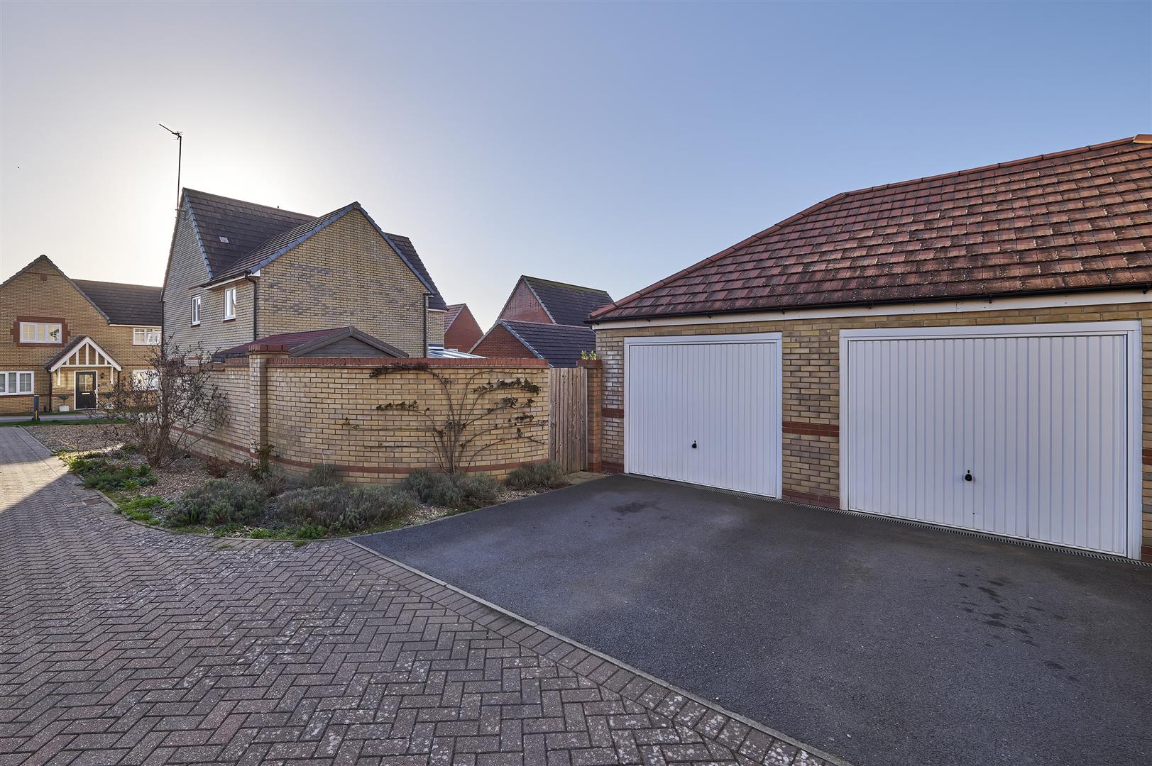 • Large double garage with, power, fitted storage and loft space