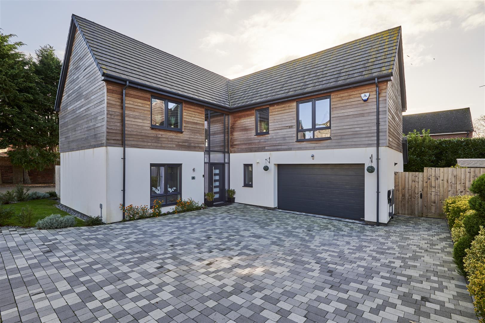 Set on one of Rushden's most prestigious and peaceful addresses, 1 High Beech is an exceptional six-bedroom detached home, built in 2021 and privately positioned behind electric gates with a long tree-lined driveway and video intercom access.