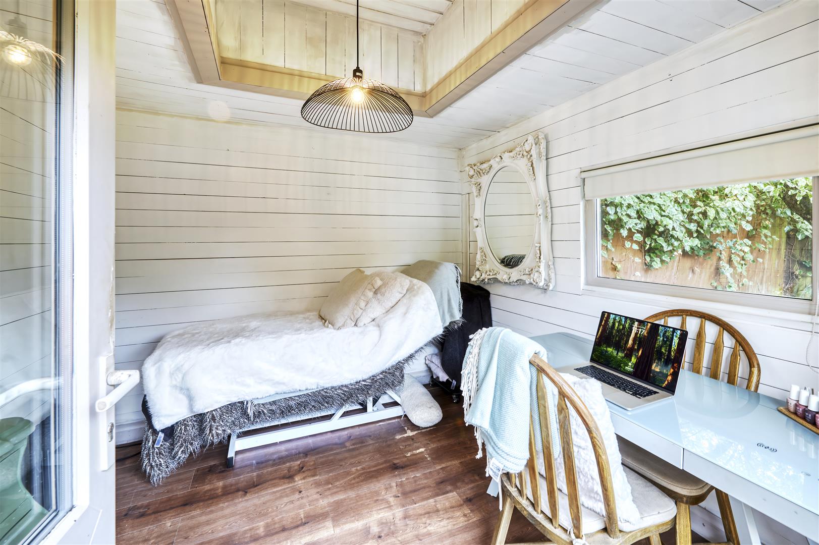 Externally, the home enjoys an attractive and sout facing rear garden with mature trees and shrubs offering sunlight, privacy and shade. At the far end of the garden is a dedicated home office, equipped with power, lighting, and reliable internet - perfect for those working remotely or seeking a creative studio space.