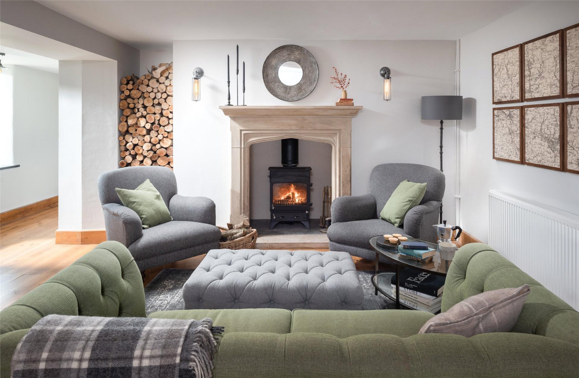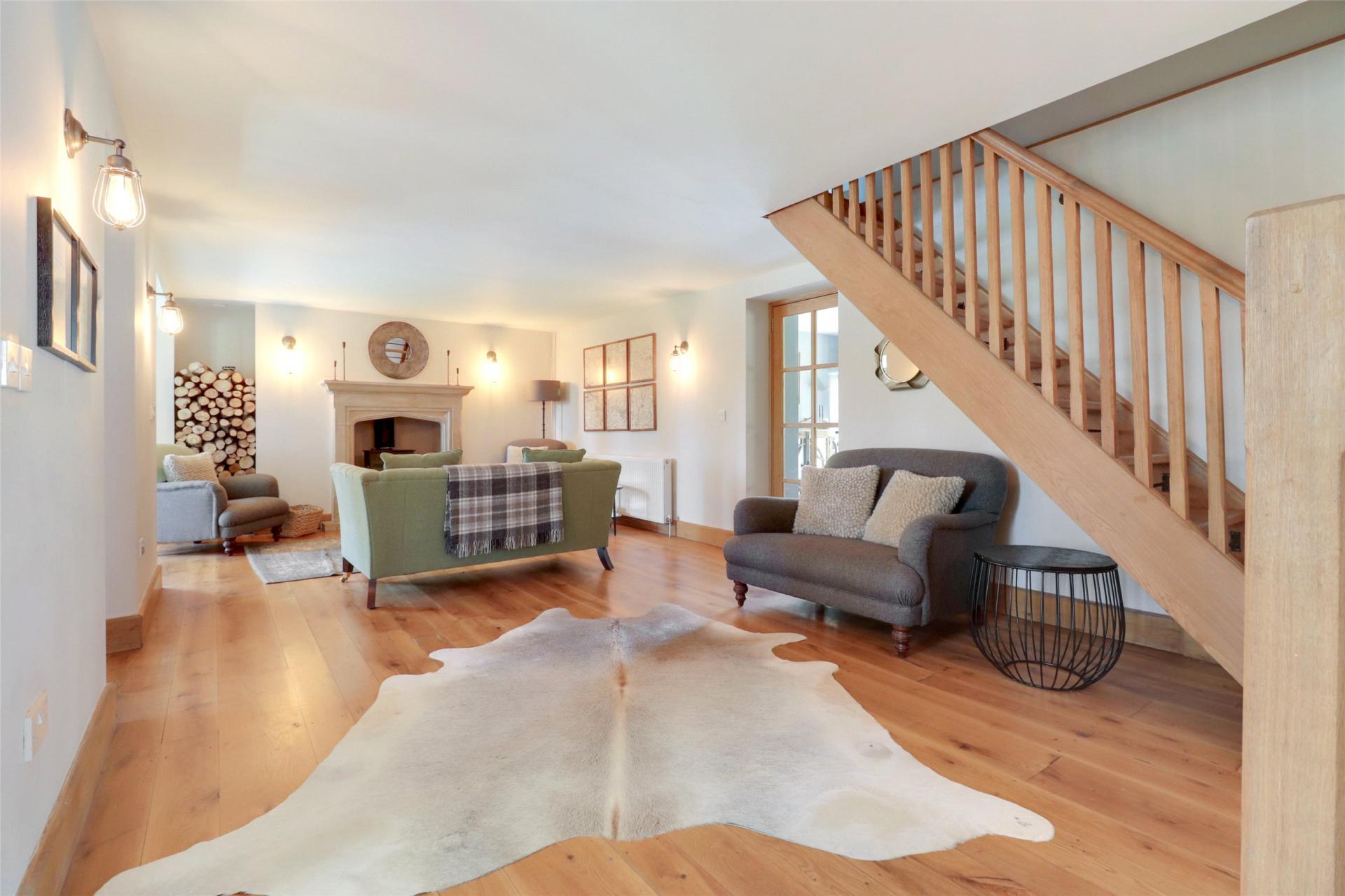 A pair of striking, wooden doors welcome you into this imperious home. There is an area of storing coats and shoes as you step inside where an archway beckons you into a stunning living room. This spacious reception room is the heart of the home and ideal spot to sit down and relax in on a cold winters evening. It boasts ample space for sizeable furniture, a wood burning stove inset into a beautiful feature fireplace with an alcove to the left used for storing wood. There are also stairs to the first floor, doors to all principal rooms and a door to a study - ideal for any discerning buyer who wishes to work from home.