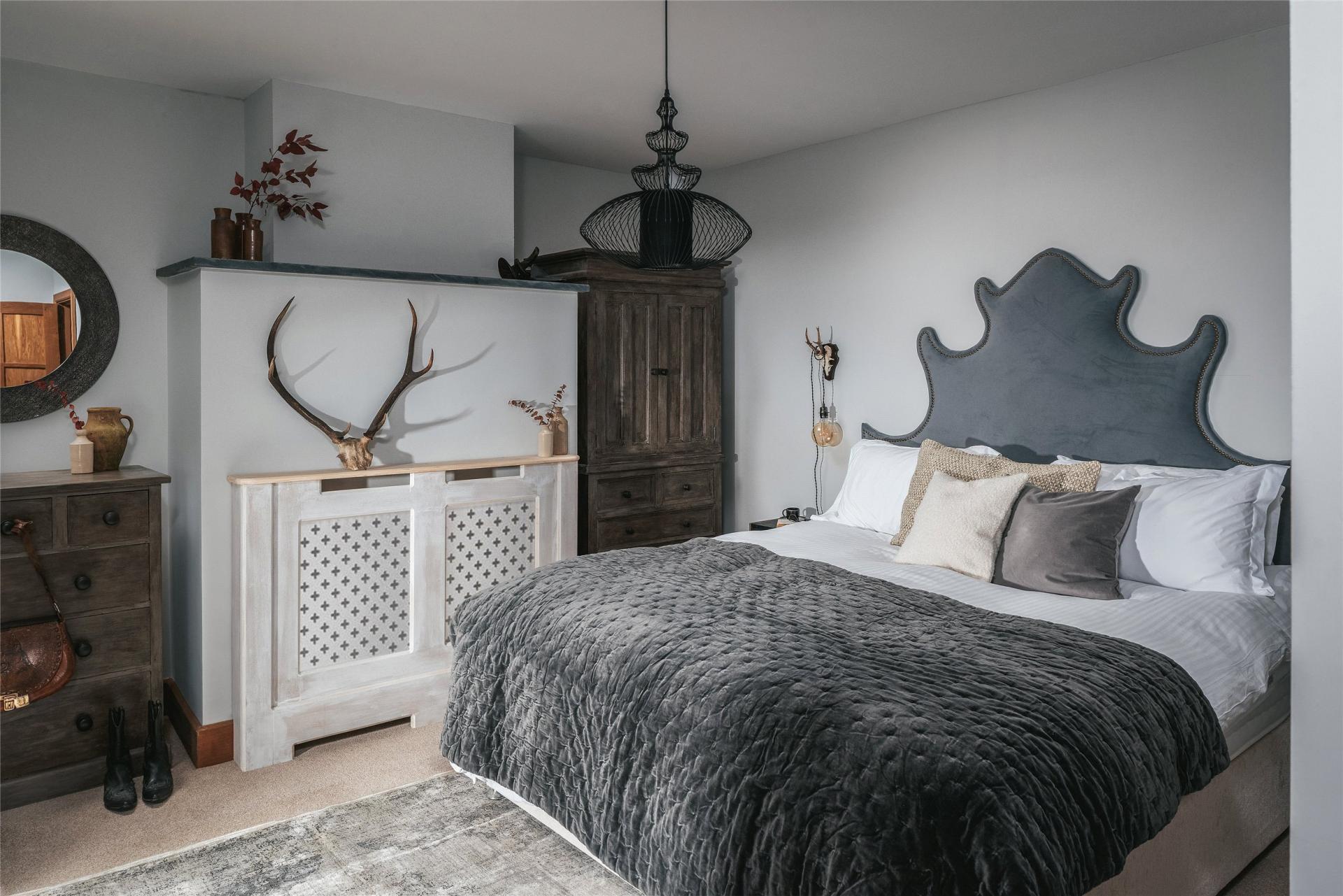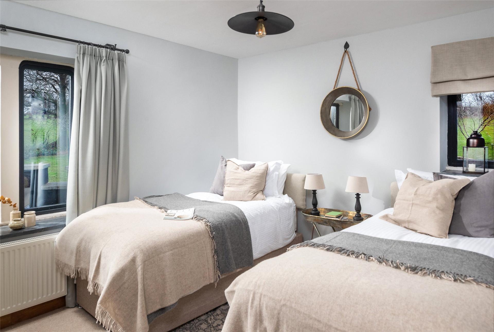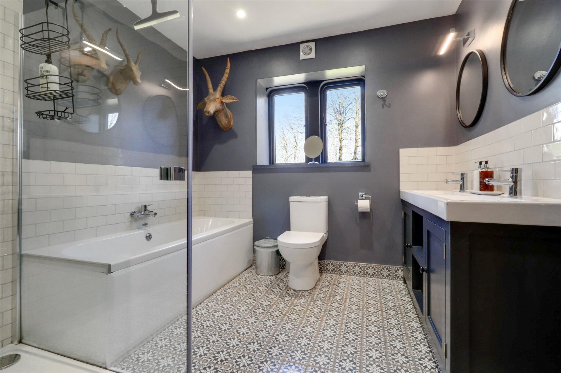On the first floor are three double bedrooms, a smaller single bedroom and a family bathroom. All of the bedrooms are well proportioned, whilst also benefitting from outstanding countryside views. The master bedroom has its own dressing area, with two doors to the rooftop space. The modern four-piece family bathroom suite comprises of his and her sinks, close coupled WC, panelled bath and a corner shower.