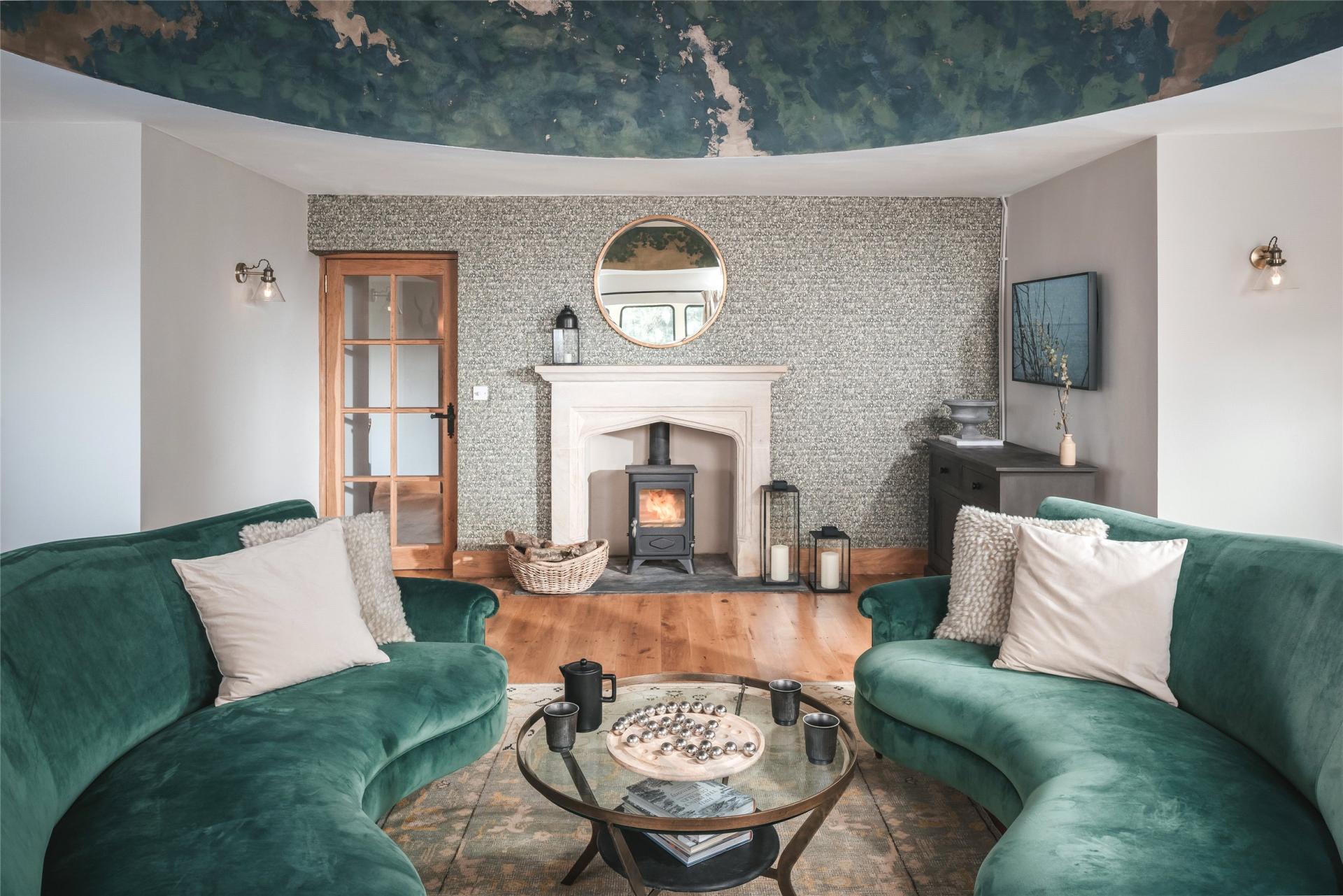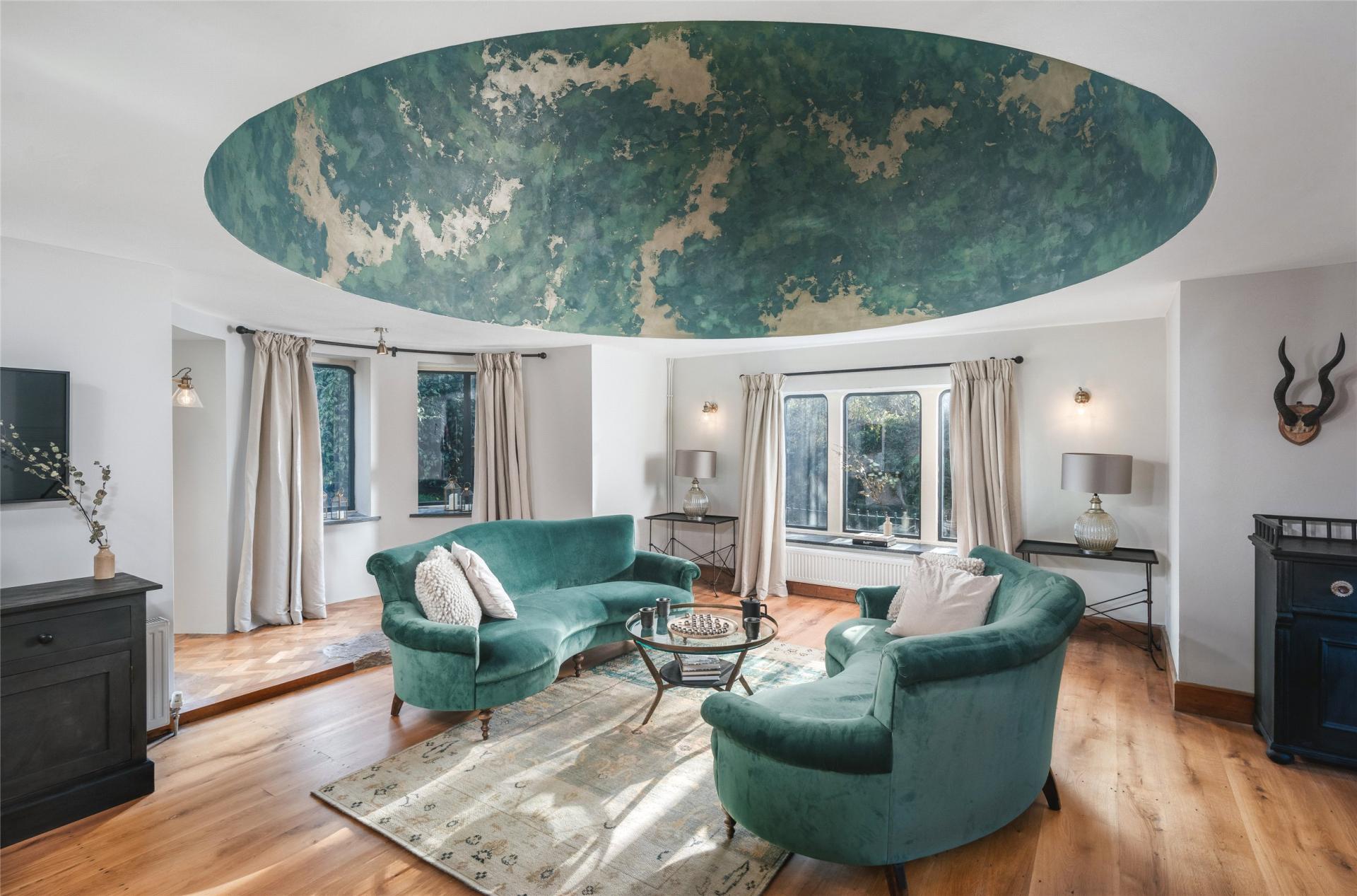 There is also a very impressive triple aspect sitting room with a breathtaking domed ceiling and an arched fireplace recess. This room also provides access to a cosy snug with wood parquet floor and fine views of the surrounding gardens.