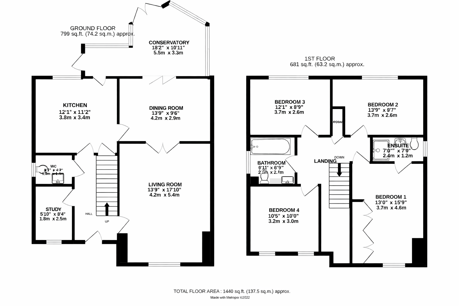 There is also a ground floor study. Upstairs are four well-proportioned bedrooms, including the principal bedroom with renewed en-suite, and a family bathroom.