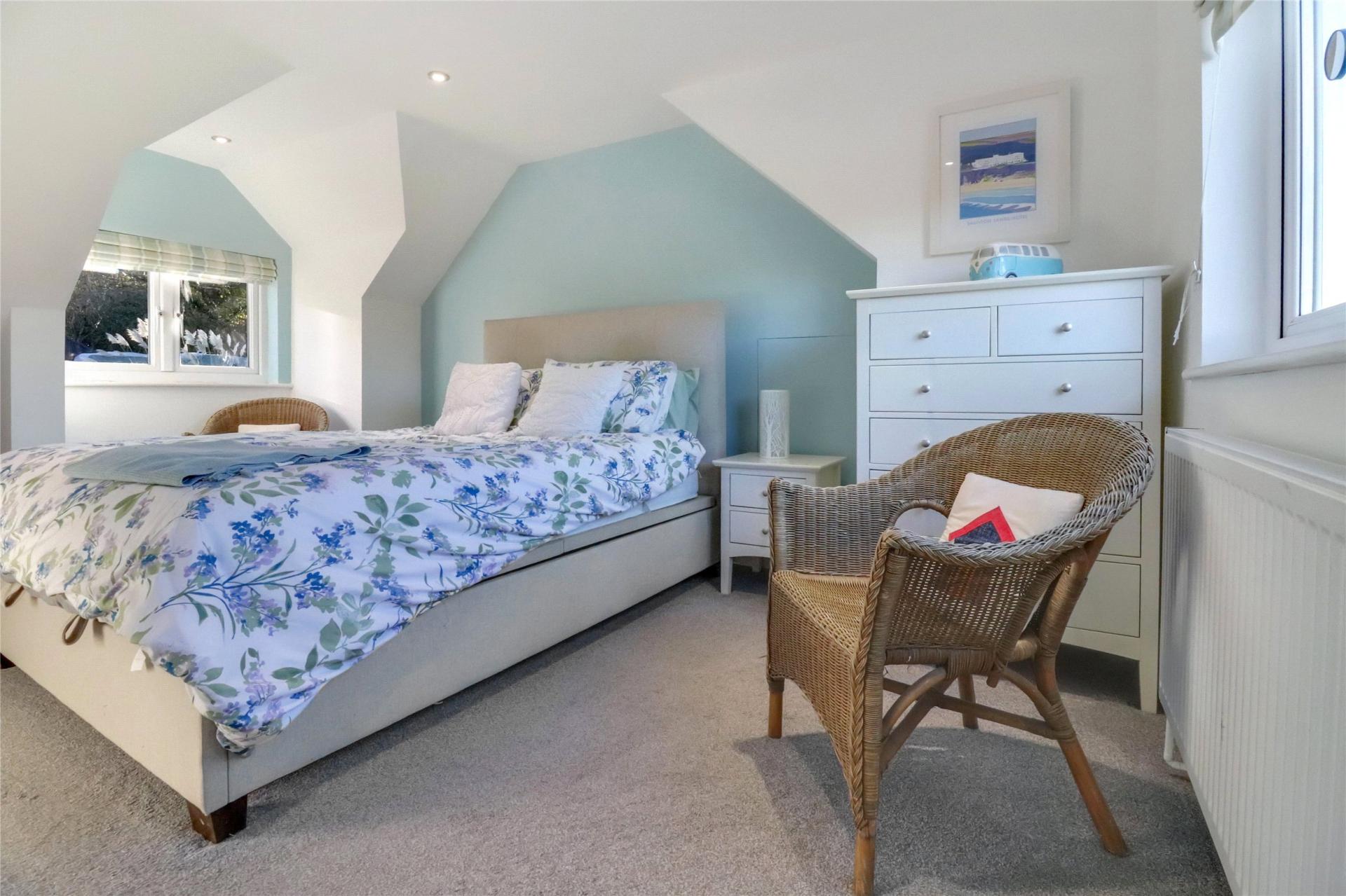 The first floor is dedicated to a generous principal bedroom with two windows overlooking the grounds. This bedroom benefits from an L-shaped dressing area and a luxurious en-suite bathroom complete with a roll-top bath, separate shower, wash hand basin and WC.