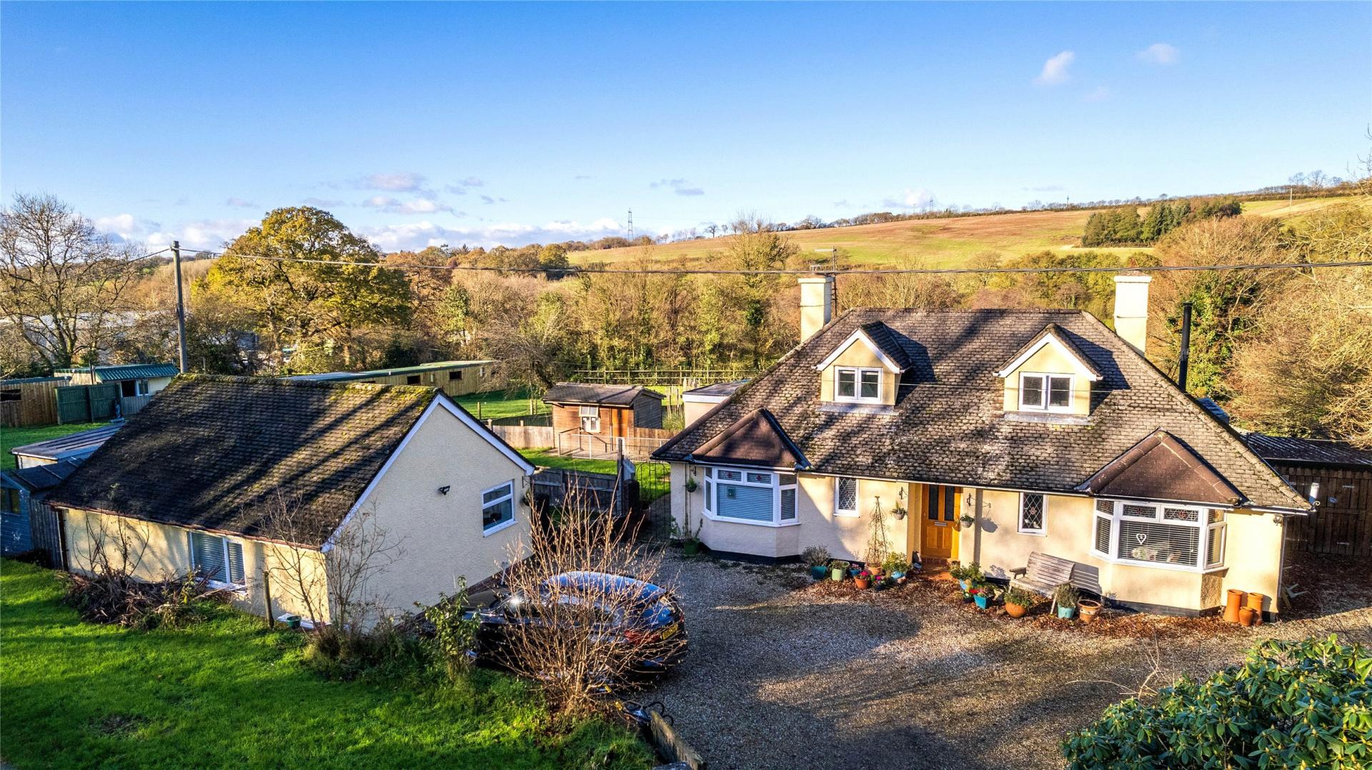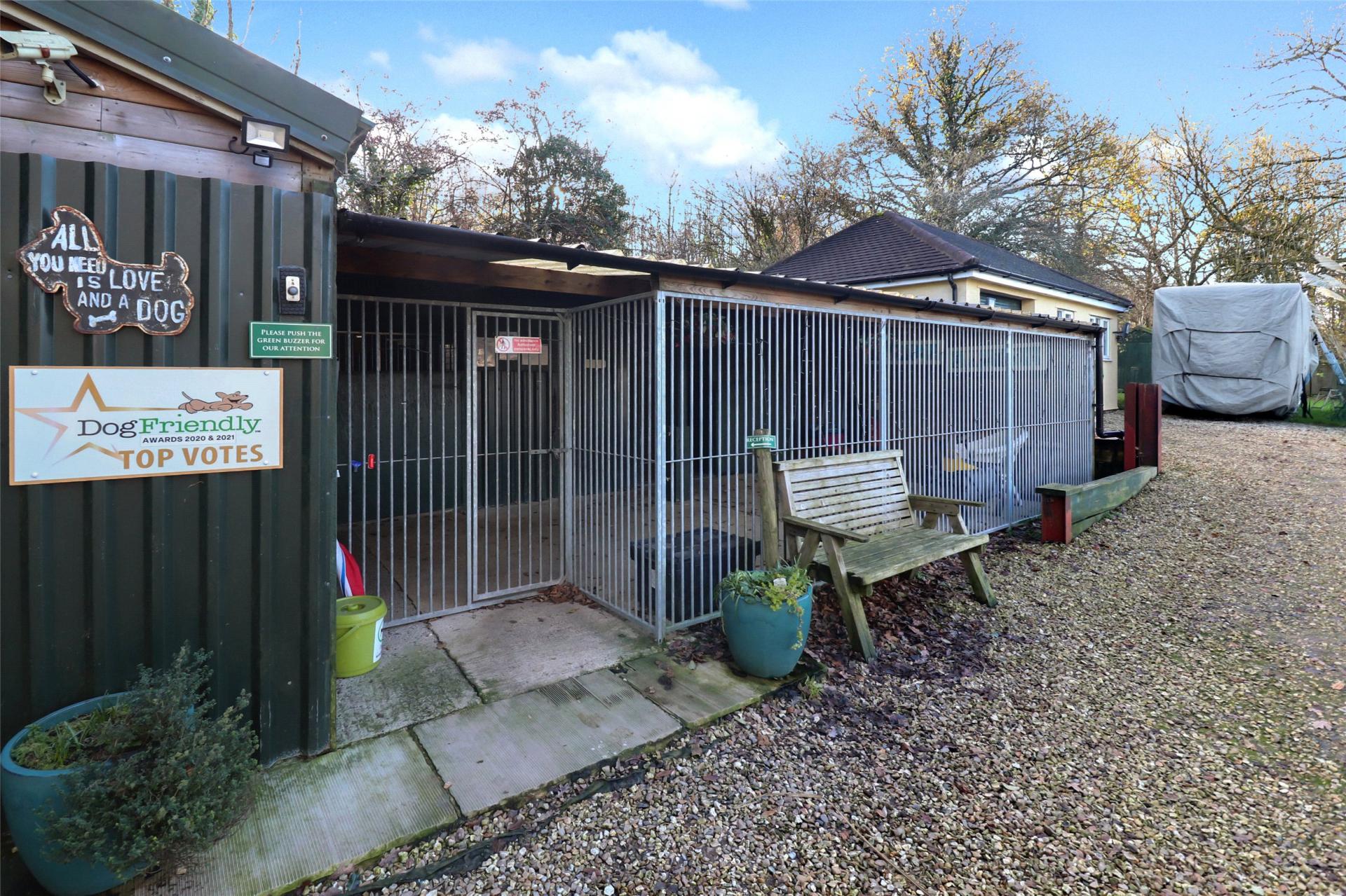 Trelawn Boarding Kennels offers a rare combination of a spacious family home, beautifully landscaped grounds, a versatile detached annexe and an established, award-winning boarding kennels business. Set within approximately two acres and surrounded by open countryside, it provides an appealing lifestyle opportunity for buyers seeking a well-presented residence with income potential, multi-generational accommodation or space to work from home. The grounds, facilities and layout make it ideal for those looking to enjoy a peaceful setting while running a successful, fully operational kennels business. NO ONWARD CHAIN