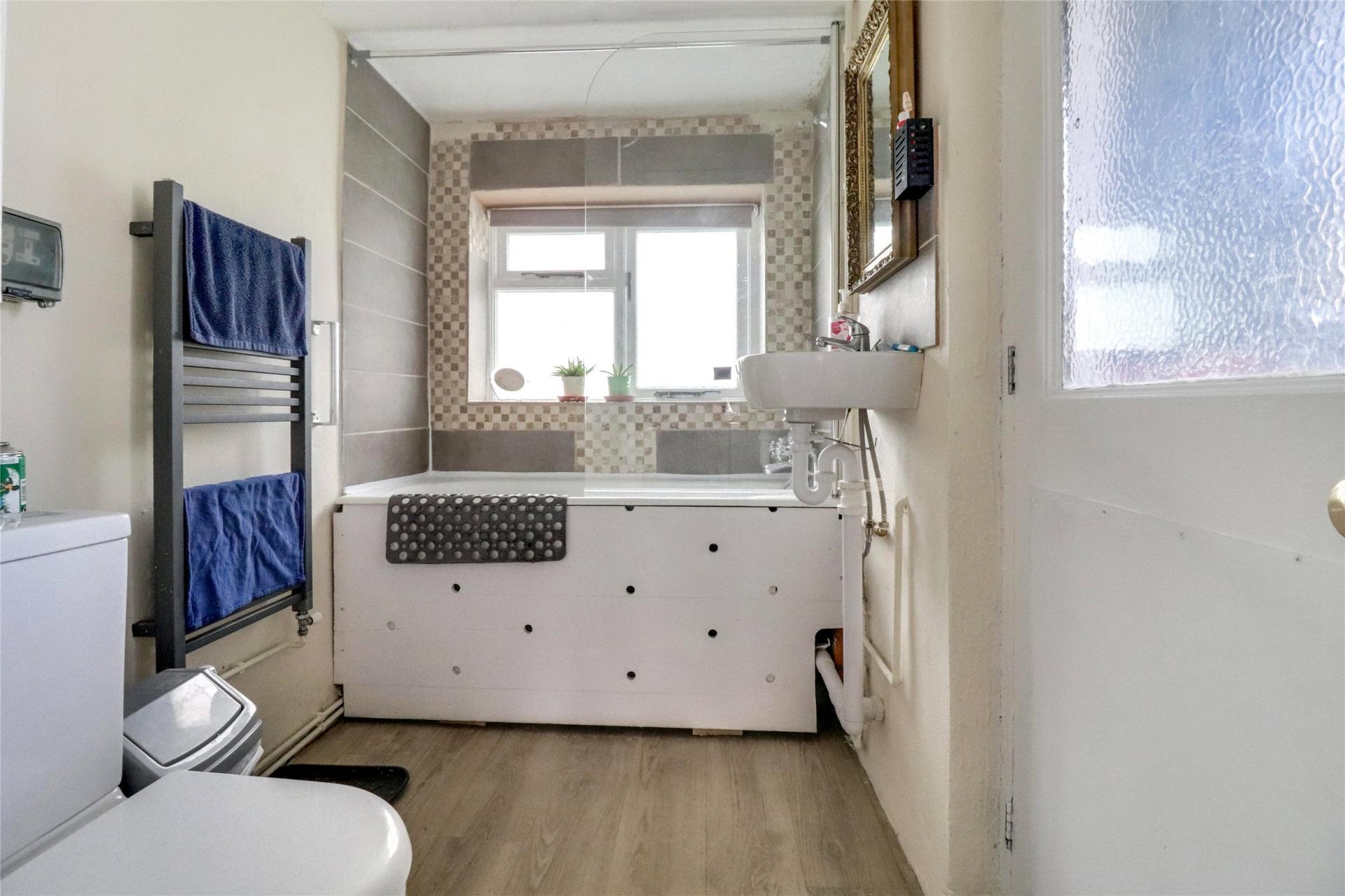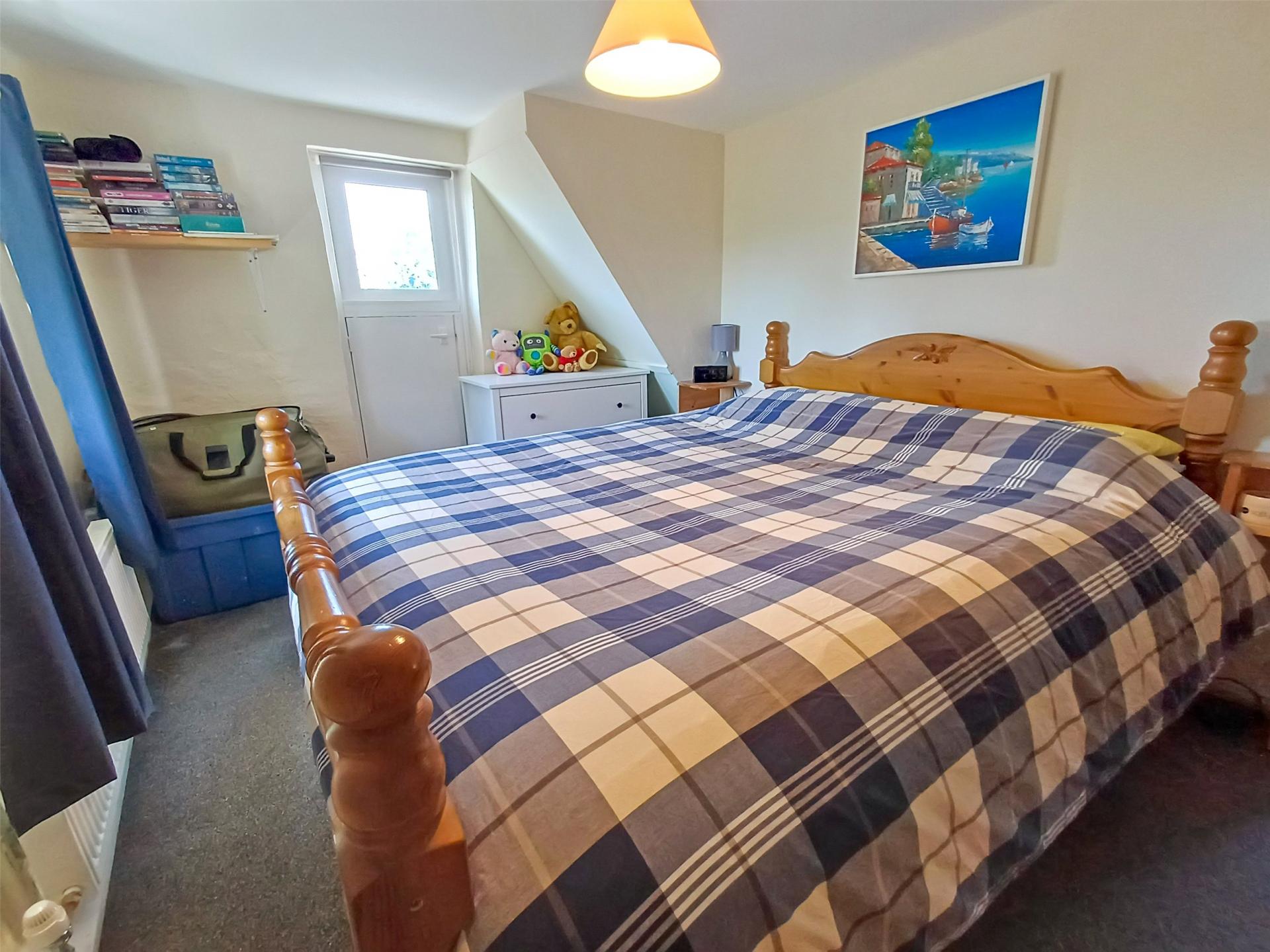 To the right of the living room is the third bedroom, a spacious double with the added benefit of a step up to a versatile area ideal as a walk-in wardrobe, as well as a convenient door to the garden.