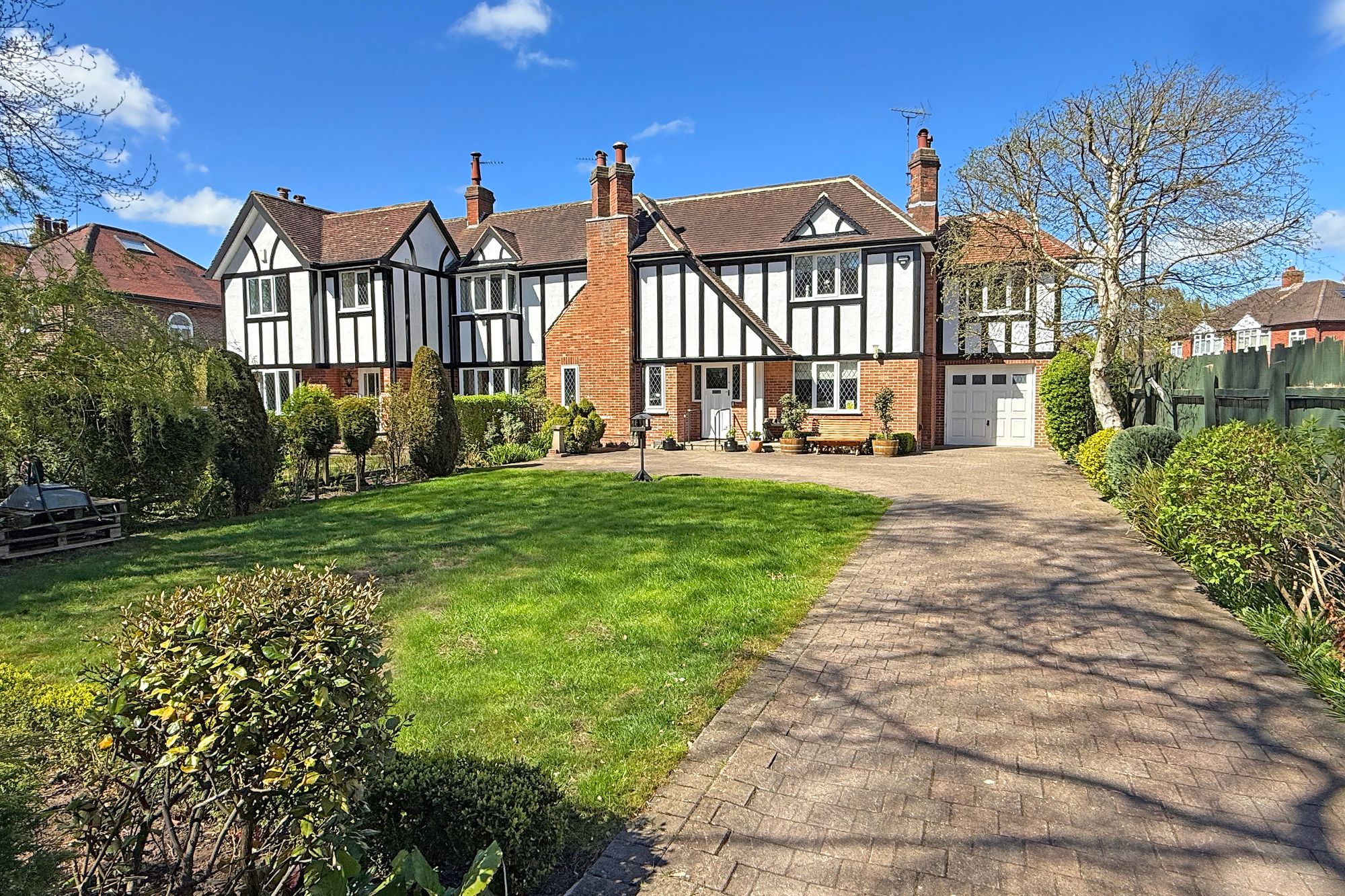 This impressive family home provides very good-sized living space, having a large L-shaped reception room, together with conservatory and garden room, study, downstairs WC and kitchen. Upstairs, there are four good-sized bedrooms, with the master bedroom having an en-suite shower room, and there is also a house bathroom. A particular feature of the property is the large and attractive rear garden with lawn and patio sitting areas and...