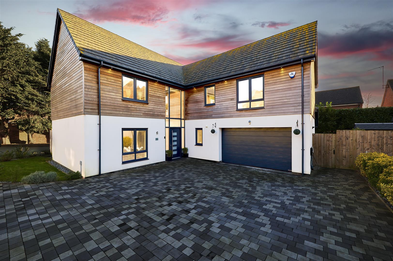 Set on one of Rushden's most prestigious and peaceful addresses, 1 High Beech is an exceptional six-bedroom detached home, built in 2021 and privately positioned behind electric gates with a long tree-lined driveway and video intercom access.