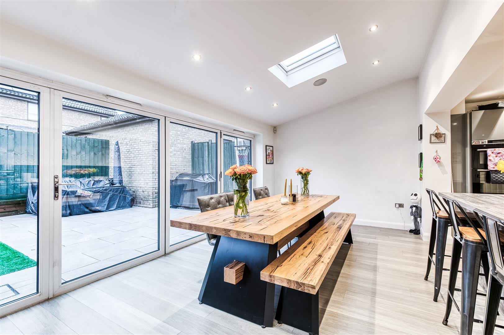 The heart of the property is the impressive open plan kitchen / family room, created by the extension and designed for modern living and entertaining. This fantastic space features a large central island, bi-fold doors opening out to the garden, skylights flooding the room with natural light, and the comfort of underfloor heating. The layout provides a real "wow factor" and a perfect setting for family life, hosting and relaxed evenings at home.