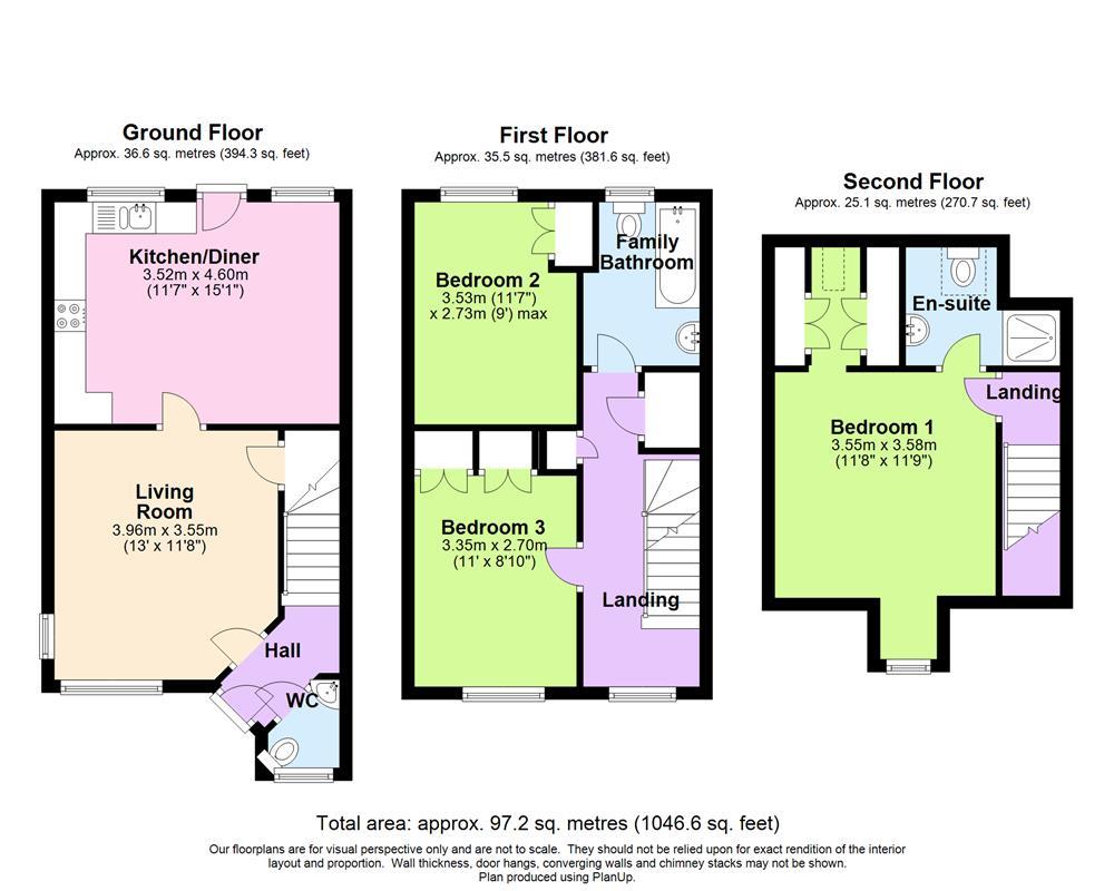 Bedroom 3 - 3.35m (11') x 2.70m (8'10") - Window to front, two double door wardrobes, door to landing.