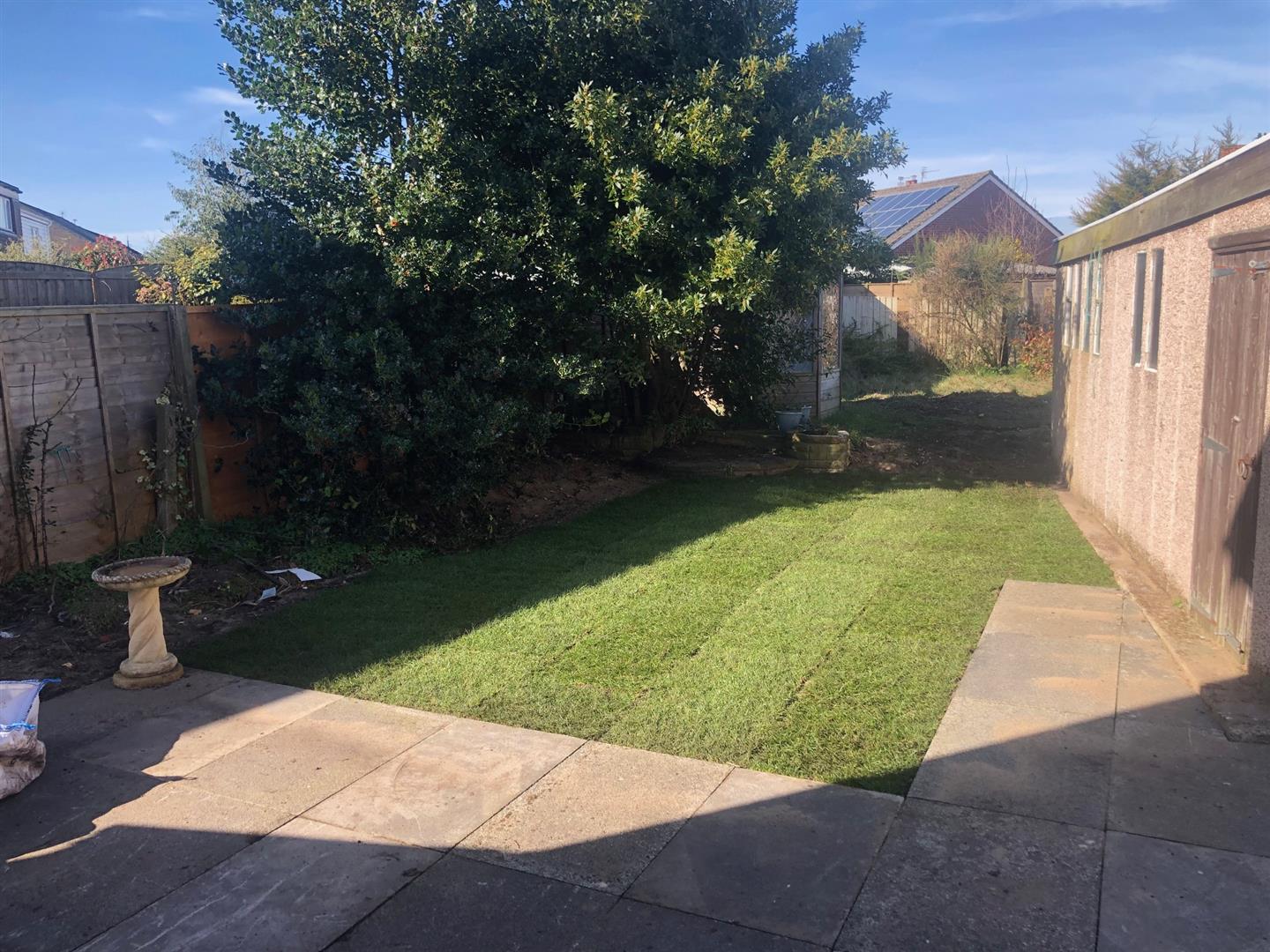 Rear Exterior - patio area, lawn and planted boarders